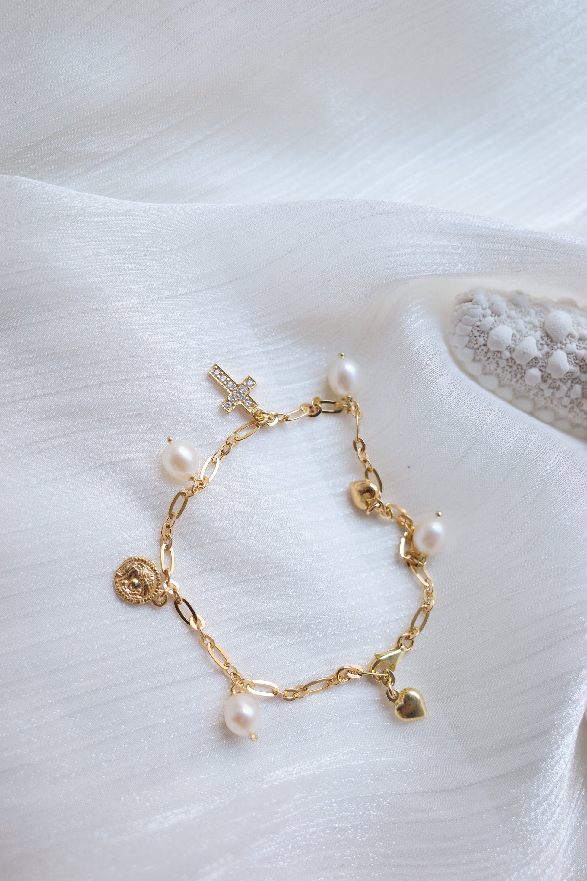 - Features multiple symbolic pendants: Ancient Rome coin, cross, and real pearl