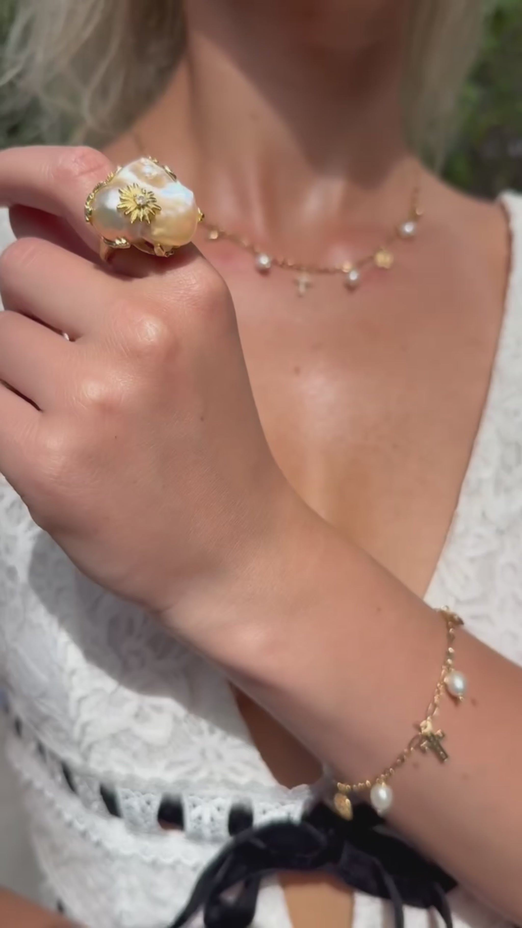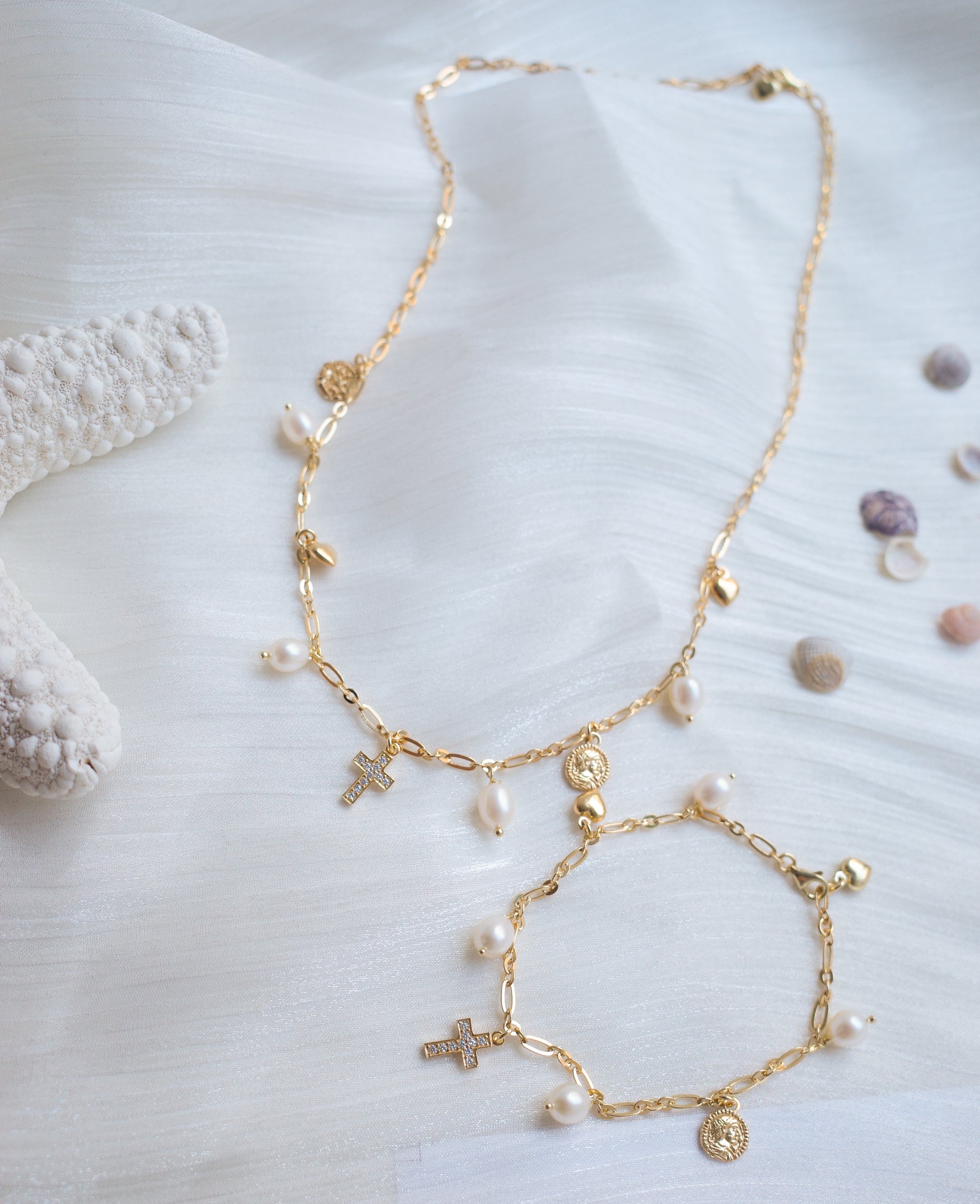 The Capri Necklace carries the carefree beauty of Italy’s most iconic coast. Multiple pendants—an ancient Roman coin, a classic cross, and a real freshwater pearl—create a story of heritage, faith, and seaside serenity. Its rich Italian gold-vermeil finish has that unmistakable “Italy gold” glow, made with an extra-thick layer for long-lasting shine.