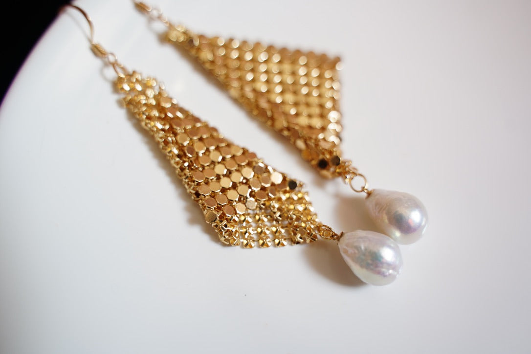Elevate your style with our exquisite Gatsby Earring, meticulously handcrafted to perfection. Designed to dazzle, this piece showcases the beauty of baroque organic freshwater pearls. Each detail exudes elegance and charm, making it a must-have accessory for any occasion.